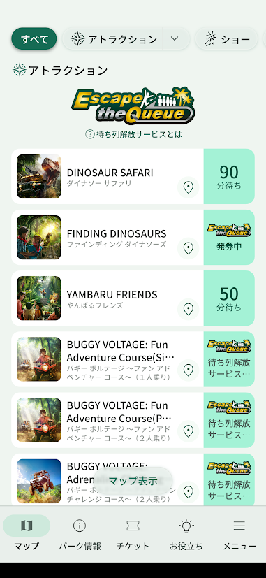 公式アプリ待ち時間・マップ・整理券機能が充実